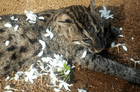காட்டுப் பூனை என அழைக்கப்படும் இப்புலியை சுற்றி மல்லிகைப் பூக்கள் தூவப்பட்டுள்ளமையும் இங்கு சுட்டிக்காட்டத்தக்கது.