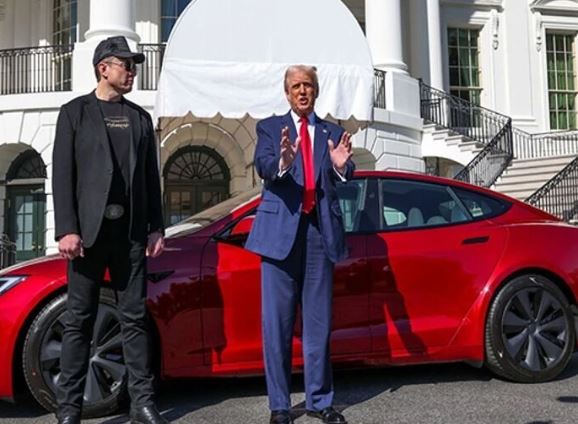 அமெரிக்க ஜனாதிபதி டொனால்டு ட்ரம்ப் புதிய வகை சிவப்பு நிற S டெஸ்லா கார் ஒன்றை வாங்கியுள்ளார்.