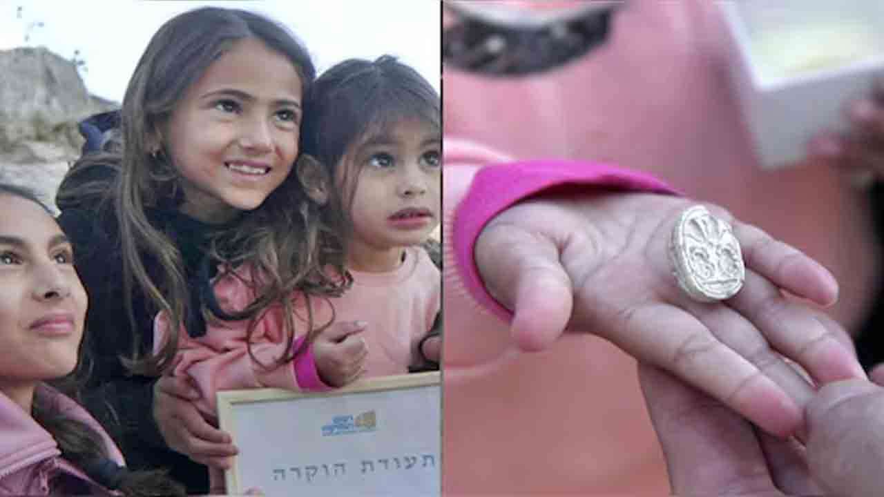 இஸ்ரேலில் மூன்று வயது சிறுமி ஒருவர் குடும்பத்துடன் சுற்றுலா சென்ற போது ஒரு பழங்கால புதையலைக் கண்டுபிடித்ததன் மூலம் ஒரே இரவில் பிரபலமடைந்துள்ளார்.