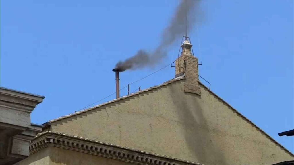 வாக்கெடுப்பைத் தொடர்ந்து வத்திக்கானில் உள்ள செயிண்ட் பீட்டர்ஸ்பெசிலிக்காவின் புகைபோக்கியில் இருந்து கரும்புகை வெளியேறியுள்ள நிலையில், இது புதிய பாப்பரசரை இன்னும் தேர்ந்தெடுக்கப்படவில்லை என்பதைக் குறிக்கிறது.