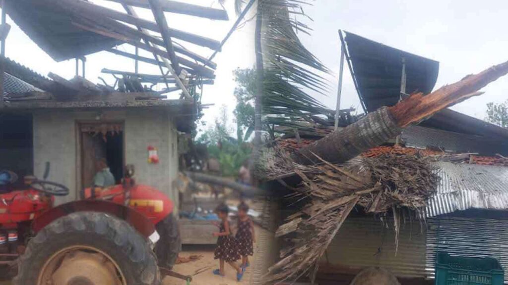 இதேபோன்று, அப்பகுதியில் மேலும் 2 வீடுகள் மீது மரம் முறிந்து வீழ்ந்து சேதமடைந்துள்ளதாக அப்பகுதி மக்கள் தெரிவிக்கின்றனர்.