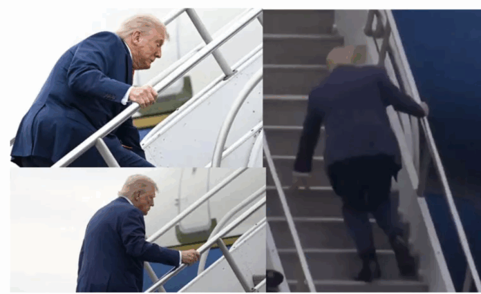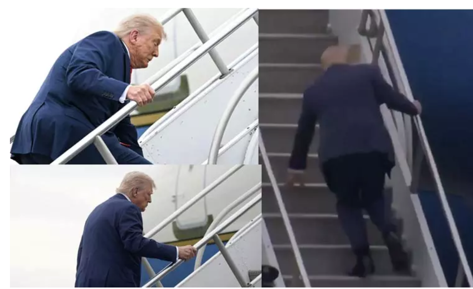விமானத்தில் ஏறுவதற்காக படிக்கட்டில் டொனால்டு டிரம்ப் ஏறிக்கொண்டிருந்தபோது திடீரென அவர் நிலைதடுமாறினார்.