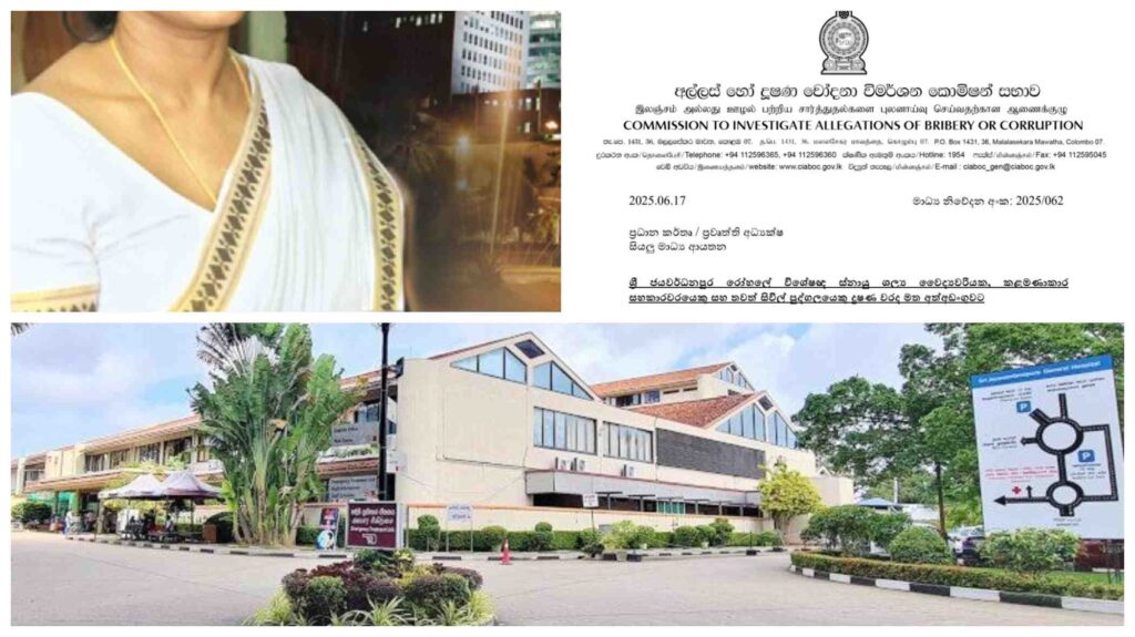 ஸ்ரீஜயவர்த்தனபுர மருத்துவமனையில் பணியாற்றும் சிறப்பு மருத்துவ நிபுணரான பெண் ஒருவரும், மேலும் இரண்டு பேரும் இவ்வாறு கைது செய்யப்பட்டுள்ளனர்.