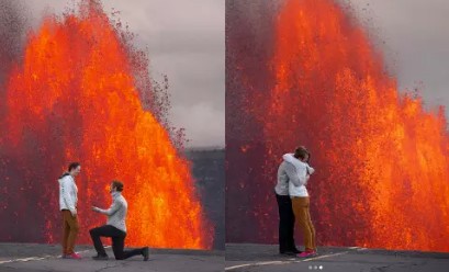 ஹவாயில் உள்ள கிலோவியா எரிமலை வெடித்து சிதறும்போது, மார்க் ஸ்டீவர்ட் என்ற நபர் தனது நீண்ட நாள் காதலி ஒலிவியாவிடம் தனது காதலை தெரிவித்தார்.