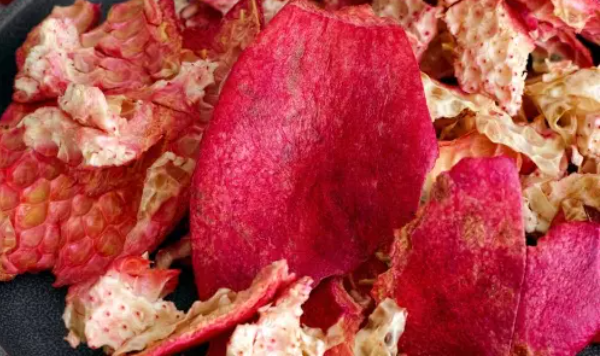 மாதுளையின் தோலில் புரதம், பீனாலிக் கலவைகள், ஆக்ஸிஜனேற்றிகள் மற்றும் பொட்டாசியம், நார்ச்சத்து முதலானவை நிறைந்துள்ளது. நீங்கள் மாதுளை தோலை உங்கள் உணவில் சேர்த்துக்கொள்ளலாம். அதற்கு முன்பு உணவில் சேர்க்கக்கூடிய பதத்திற்கு மாதுளை தோலை வெயிலில் உலர்த்தி, நைசாக அரைத்துக்கொள்ள வேண்டும். இதை செய்ய முடியவில்லை என்றால், கடைகளிலேயே மாதுளை தோல் பொடி விற்கப்படுகிறது. அதைக்கூட வாங்கிக்கொள்ளலாம்.