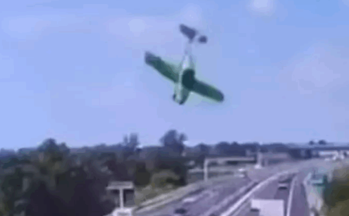 ப்ரீசியா ஆர்.ஜி. மாடல் இலகுரக விமானம் கட்டுப்பாட்டை இழந்து நெடுஞ்சாலையில் விழுந்ததால் தீப்பிடித்து எரிந்தது, இதனால் அப்பகுதி புகை மண்டலமாக காட்சியளித்தது. இந்த விபத்தைப் பதிவு செய்த சிசிடிவி காட்சிகள் வெளியாகியுள்ளன.