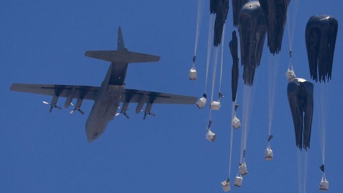 காசா பகுதியில் உள்ள மக்களுக்கு நிவாரண உதவிகளை விமானம் மூலம் விநியோகிக்க இஸ்ரேல் இராணுவம் நடவடிக்கை எடுத்துள்ளது.