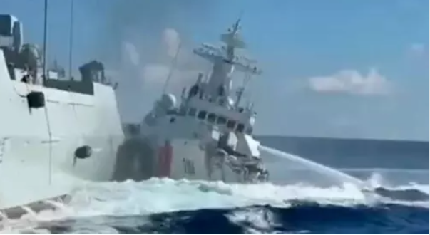 தென் சீனக் கடலில் ஸ்கார்பாரோ ஷோல் பகுதியில் திங்களன்று பிலிப்பைன்ஸ் ரோந்துப் படகைத் துரத்தும்போது சீன கடற்படை மற்றும் சீன கடலோர காவல்படை கப்பல்கள் மோதி விபத்துக்குள்ளாகின.