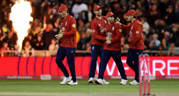 முதல் விக்கெட்டுக்கு 126 ரன்கள் சேர்த்த நிலையில் ஜோஸ் பட்லர் 83 ரன்னில் வெளியேறினார். அவர் 30 பந்தில் 7 சிக்சர், 8 பவுண்டரி உள்பட 83 ரன்கள் குவித்தார். ஹாரி புரூக் 41 ரன்கள் எடுத்தார். பெத்தேல் 26 ரன்னில் அவுட்டானார்.
