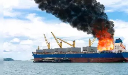 தீப்பற்றி எரியும் கப்பலை, மாலுமிகள் கைவிட்டு வெளியேற தயாராகி வருவதாக தகவல் வெளியாகியுள்ளது.