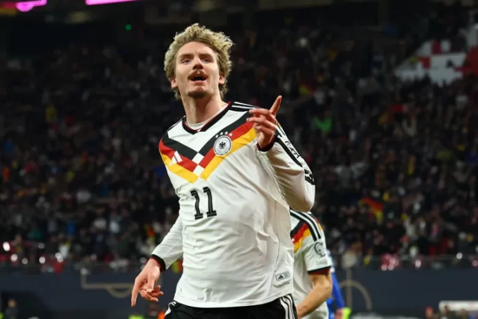 Germany’s Nick Woltemade celebrates scoring his side’s first goal against Slovakia in their World Cup UEFA Qualifiers, Group A match at Red Bull Arena, Leipzig, Germany on November 17, 2025 [Lisi Niesner/Reuters]
