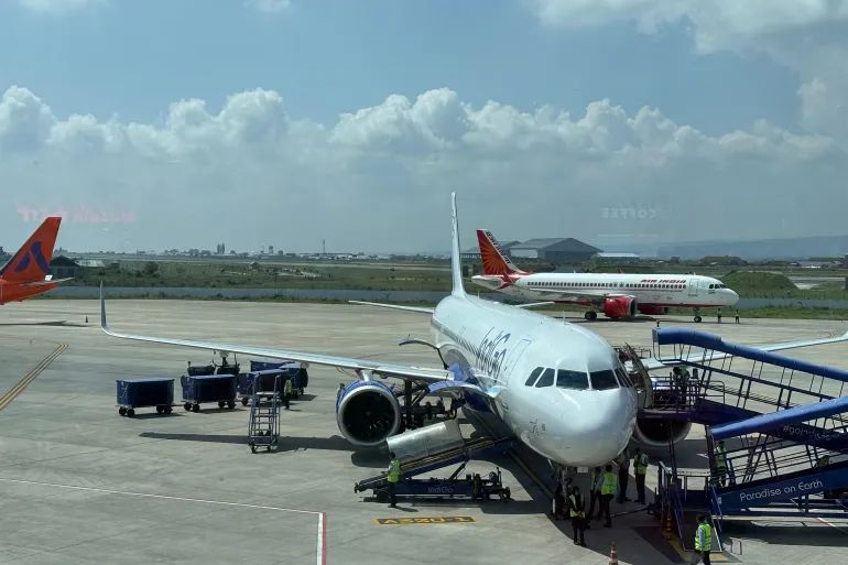 An Indigo flight on the tarmac at the airport in Srinagar, Indian-administered Kashmir [File: Aatif Ammad/Al Jazeera]