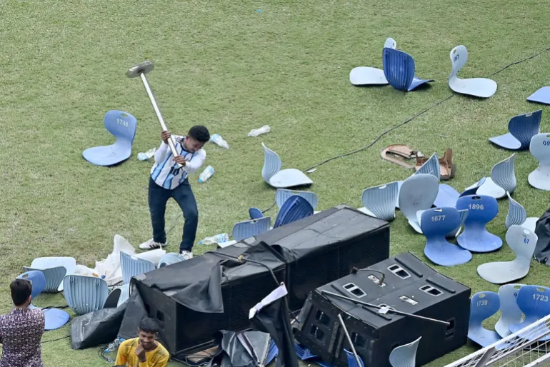 Messi’s tour of India begins with fans throwing bottles, stadium vandalised