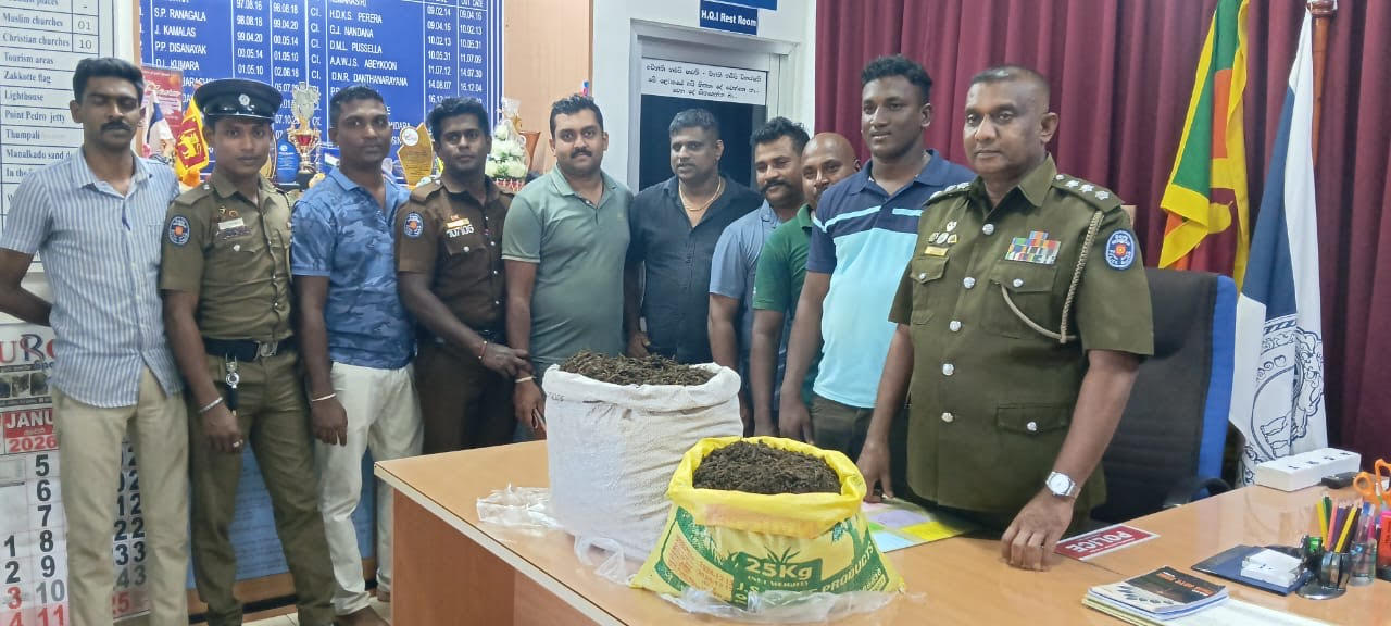 வடமராட்சி இன்பருட்டி பகுதியில் 28 கிலோ கஞ்சாவுடன் இருவர் கைது செய்யப்பட்டுள்ளனர்.