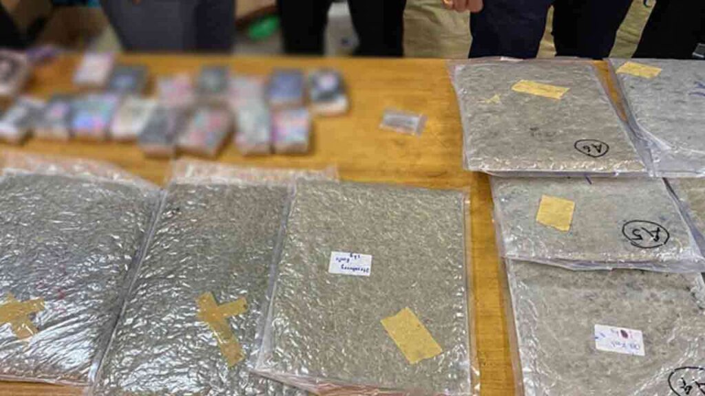 சந்தேகநபர்கள் கொண்டு வந்த 5 பயணப் பொதிகளைச் சோதனையிட்டபோது, பத்து பொதிகளில் பொதி செய்யப்பட்ட 10 கிலோகிராம் 394 கிராம் குஷ் மற்றும் 1 கிலோகிராம் 912 கிராம் ஹஷிஷ் போதைப்பொருளும் கண்டெடுக்கப்பட்டன.