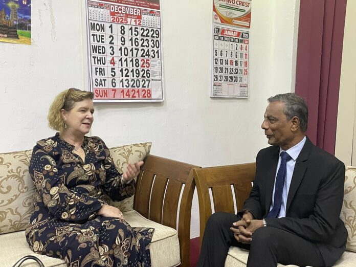 கடந்த இரு நாள்களாக வடக்குக்குக்கான உத்தியோகபூர்வ விஜயத்தை மேற்கொண்டுள்ள கனேடிய உயர்ஸ்தானிகர் இன்று செவ்வாய்க்கிழமை காலை யாழ்ப்பாணப் பல்கலைக்கழகத்துக்கு விஜயம் செய்து, பல்கலைக்கழகத் துணைவேந்தர் பேராசிரியர் சி.சிறிசற்குணராஜாவைச் சந்தித்துக் கலந்துரையாடினார்.