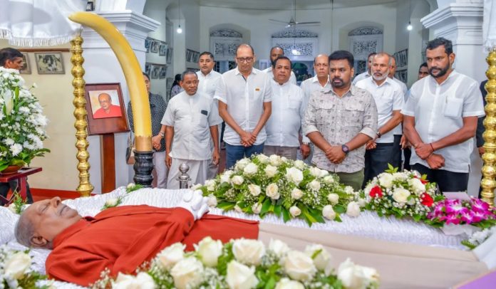 மறைந்த லங்கா சம சமாஜ கட்சியின் தலைவரும் முன்னாள் சிரேஷ்ட அமைச்சருமான பேராசிரியர் திஸ்ஸ விதாரணவின் பூதவுடலுக்கு ஜனாதிபதி அநுரகுமார திசாநாயக்க இறுதி அஞ்சலி செலுத்தினார்.